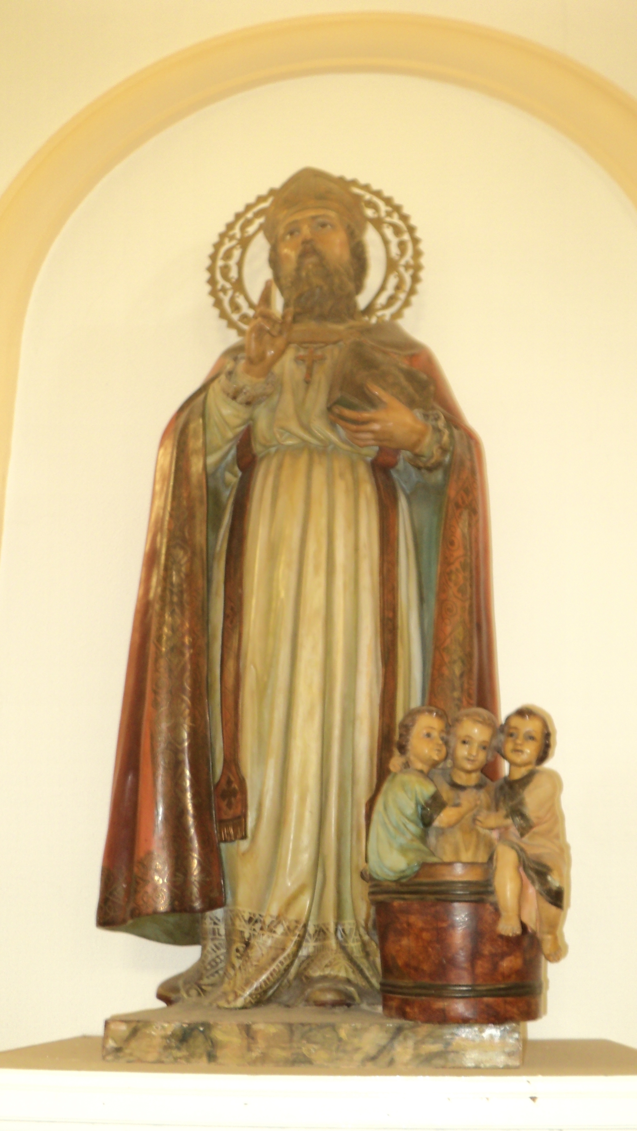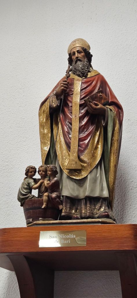 ¿Cuántas imágenes de San Nicolas hay en Melilla? Que sepamos, 2 de tamaño grande (Centro Asistencial y Batería Jota). Una de tamaño mediano en San Agustín del Real. Una más en forma de icono (iglesia Arciprestal) y una pequeña que acaba de ser puesta al culto en Stª Mª Micaela el pasado 22 de septiembre.